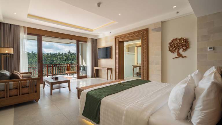 Die klimatisierten Zimmer in der Unterkunft Sanggraloka Ubud sind mit einem Schreibtisch, einem Wasserkocher, einem Kühlschrank, einer Minibar, einem Safe, einem Flachbild-TV, einer Terrasse und einem eigenen Badezimmer mit Dusche ausgestattet. Bettwäsche und Handtücher werden bereitgestellt.
