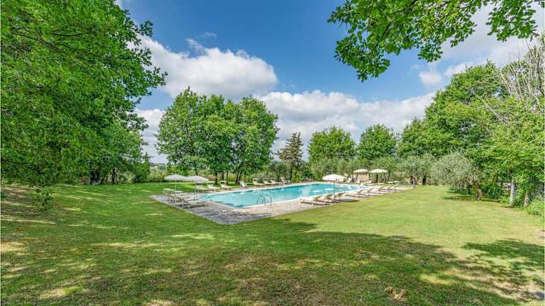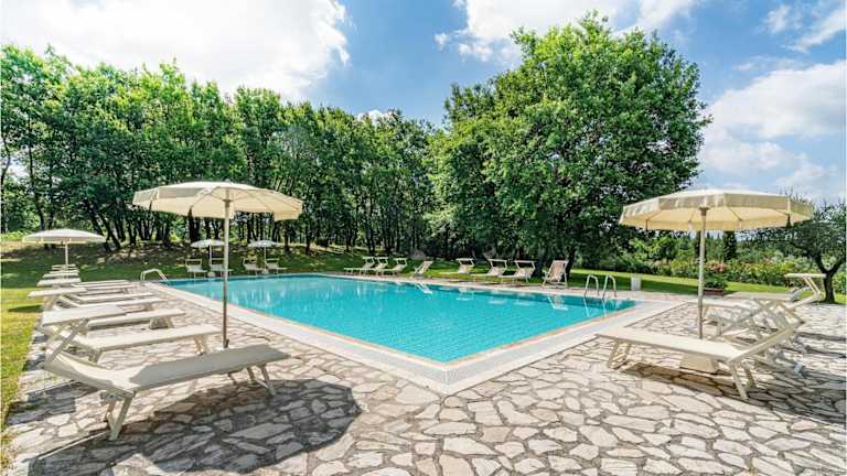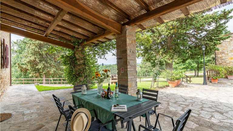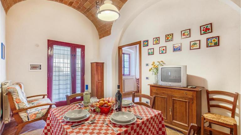 Sangiovese Sup ist ein gemütliches Ferienhaus, das sich durch eine heimelige Atmosphäre auszeichnet. Es bietet eine Veranda und einen einladenden Aussenpool, ideal zum Entspannen und Erholen.
