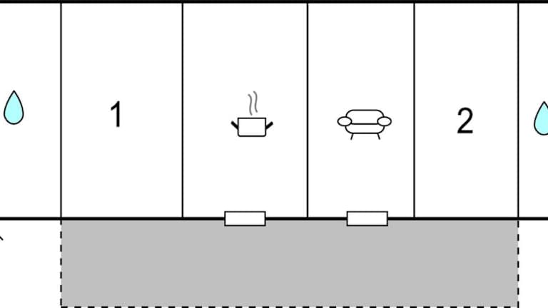 Das Ferienhaus umfasst 2 Schlafzimmer, ein Wohnzimmer sowie 2 Badezimmer mit Dusche. Es bietet Platz für einen angenehmen Aufenthalt und verfügt über alle notwendigen Annehmlichkeiten für den Selbstversorger.