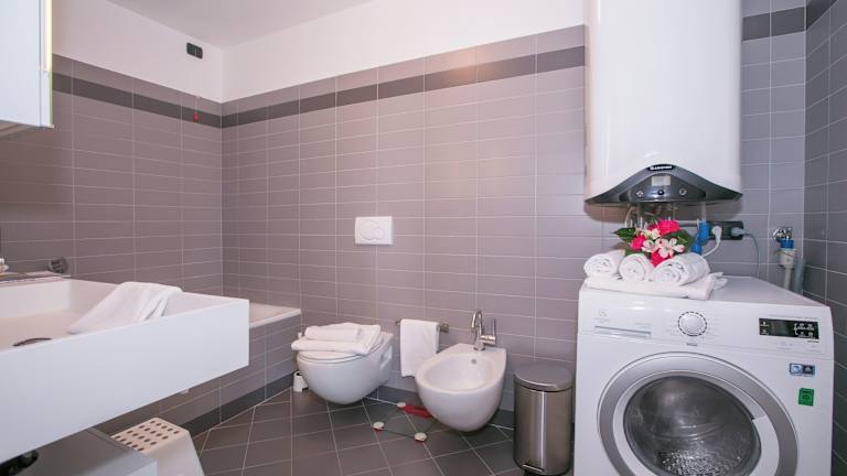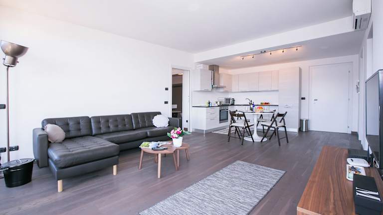 Die Ferienwohnung erstreckt sich über 2 Schlafzimmer und ein Wohnzimmer. Sie ist klimatisiert und bietet eine voll ausgestattete Küche mit Kühlschrank und Kaffeemaschine. Ein Badezimmer mit Bidet und Haartrockner ist ebenfalls vorhanden. Handtücher und Bettwäsche werden zur Verfügung gestellt.