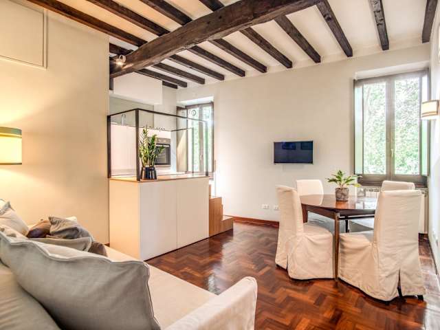 Die Unterkunft Sant'eligio river view suite ist zentral in Rom gelegen, nur 500 m vom Campo de Fiori und 1,1 km vom Largo di Torre Argentina entfernt. Fussläufig sind die Sehenswürdigkeiten wie die Piazza Navona, das Pantheon und der Vatikan leicht erreichbar.