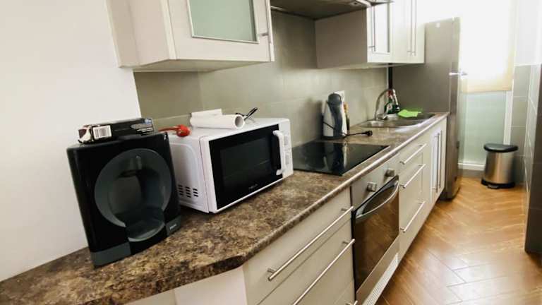 Die Ferienwohnung verfügt über zwei Schlafzimmer, ein Wohnzimmer und eine voll ausgestattete Küche mit Kühlschrank und Kaffeemaschine. Das Badezimmer ist mit einer Dusche ausgestattet. Ein TV ist ebenfalls vorhanden und Klimaanlage sorgt für Bequemlichkeit.