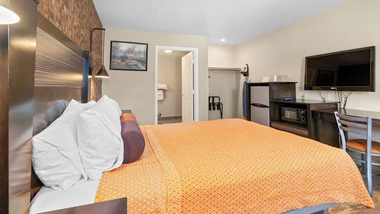 Die Zimmer im Santa Clarita Motel verfügen über kostenloses Wifi, TV und sind klimatisiert. Sie sind mit Kühlschrank, Mikrowelle und Radiowecker ausgestattet und bieten kostenlose Pflegeprodukte. Die Deluxe Zimmer sind zusätzlich mit einem Schreibtisch und Lederstühlen eingerichtet. Allergikerfreundliche Zimmer sind ebenfalls verfügbar.