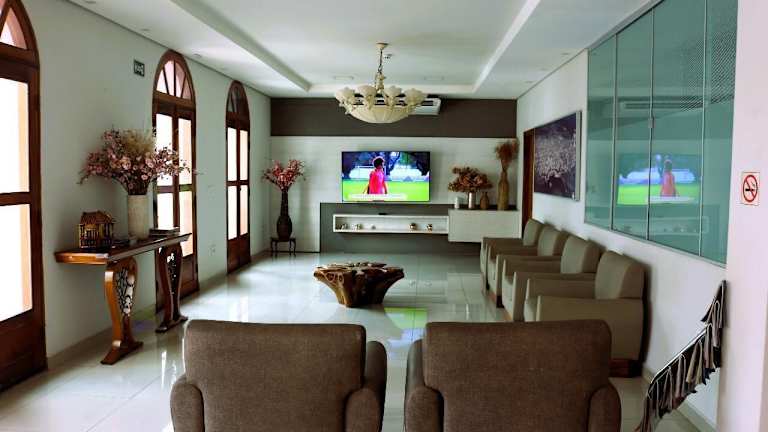 Das Santa Mônica Palace Hotel befindet sich nur 200 m vom Zentrum von Corumbá entfernt und ist 4 km vom internationalen Flughafen Corumbá sowie 5 km von den Ufern des Binnenland-Feuchtgebietes Pantanal entfernt. Porto Geral und die Museen Muphan sowie Boticário liegen im Umkreis von 1 km und die bolivianische Grenze ist nur 15 km entfernt.