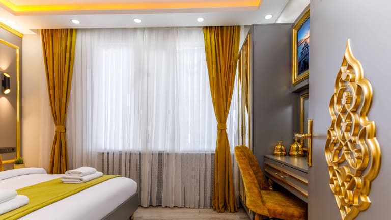 Erleben Sie einen angenehmen Aufenthalt im Santa Rio Taxim Hotel in Istanbul. Die zentrale Lage, der Komfort der Unterkünfte und die Vielzahl an Annehmlichkeiten machen dieses Hotel zu einer idealen Wahl für Ihren Aufenthalt. Genießen Sie den kostenfreien WLAN-Zugang, die Gemeinschaftslounge und die Wellnessmöglichkeiten wie Whirlpool und Sauna. Starten Sie Ihren Tag mit einem leckeren Halal-Frühstück und profitieren Sie von den praktischen Serviceleistungen wie Bügelservice und Geschäftseinrichtungen. Die Nähe zu beliebten Sehenswürdigkeiten und der Flughafentransfer runden das Angebot des Hotels ab.