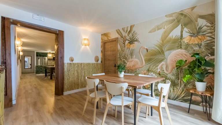 Santo - Coworking - Coliving - Madrid bietet klimatisierte Zimmer, einen Garten, eine Gemeinschaftslounge und kostenloses Wifi. Die Unterkunft beeindruckt mit einer Gemeinschaftsküche und einem Wasserpark sowie Stadtblick von der Terrasse.