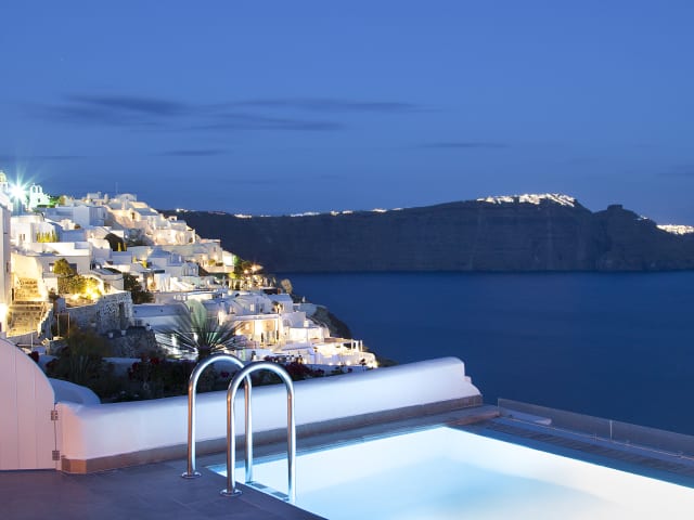 Das Santorini Secret Suites & Spa ist ein Boutique-Hotel, das Suiten mit Blick auf die Caldera und den Vulkan bietet. Die Unterkünfte sind im minimalistischen kykladischen Stil gestaltet, verfügen über private Terrassen mit eigenen Pools oder Whirlpools und sind klimatisiert.