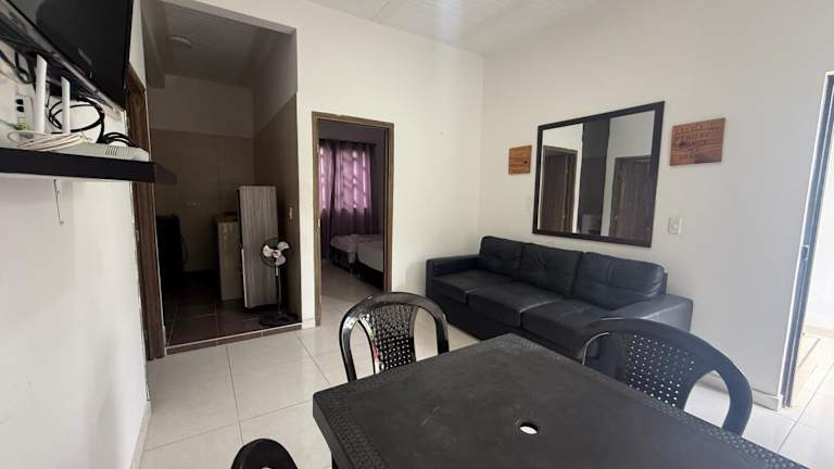 Das 101 SANTYS HOUSE MELGAR apartamento amoblado para 6 personas ist eine komfortable Unterkunft in Melgar, ideal für einen entspannten Aufenthalt. Mit kostenfreiem WLAN, einer voll ausgestatteten Küche und einer Terrasse bietet dieses klimatisierte Apartment alles, was Sie für einen angenehmen Aufenthalt benötigen. Die Nähe zu Piscilago und die kostenfreien Privatparkplätze machen diese Unterkunft zu einer praktischen Wahl.