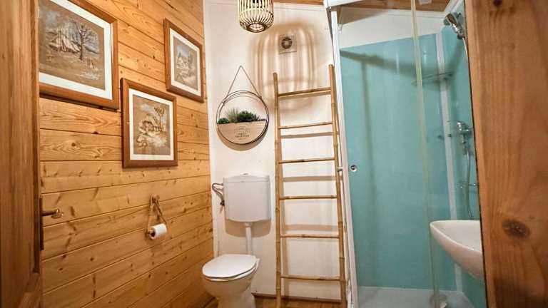 Das Ferienhaus besteht aus 1 Schlafzimmer, einem Wohnzimmer und einer voll ausgestatteten Küchenzeile mit Kühlschrank und Kaffeemaschine. Es bietet zudem 1 Badezimmer mit Dusche und Haartrockner. Handtücher und Bettwäsche werden bereitgestellt.