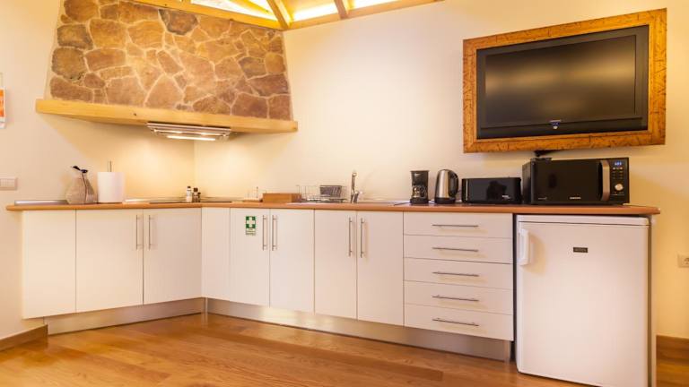 In der Unterkunft gibt es die Möglichkeit zur Essenslieferung. Die Küchenzeilen in den Ferienwohnungen sind mit Kühlschrank, Mikrowelle und Herdplatte ausgestattet, was Selbstverpflegung ermöglicht.