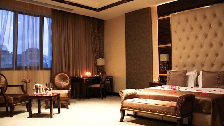 Das Sapphire Hotel in Baku bietet eine ideale Lage im Zentrum der Stadt und ist nur wenige Gehminuten von der Nizami-Straße, dem Heydar Aliyev-Palast und dem Winterpark entfernt. Die geräumigen und eleganten Zimmer bieten kostenfreies WLAN und einen herrlichen Blick auf die Stadt. Im Restaurant des Sapphire Hotels wird ein leichtes Frühstück serviert, während am Abend traditionelle azerbaijanische Gerichte angeboten werden. Snacks, Kaffee und andere Getränke sind in der trendigen Lounge-Bar erhältlich. Die klimatisierten Zimmer sind geschmackvoll eingerichtet und verfügen über modernes Mobiliar. Jedes Zimmer ist mit einem Flachbild-TV, einer Minibar und einem eigenen Badezimmer mit Bademänteln und Pflegeprodukten ausgestattet. Kostenfreie Parkplätze stehen zur Verfügung. Die Straßenbahnhaltestelle erreichen Sie in 2 Gehminuten und die Metrostation Sahil in 10 Gehminuten.