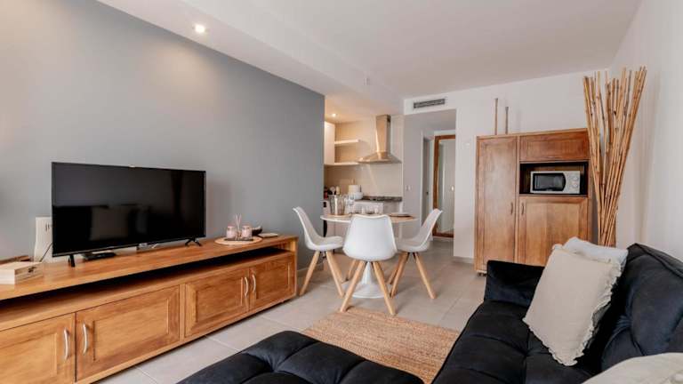 Die Ferienwohnung umfasst ein Schlafzimmer, ein Wohnzimmer mit Flachbild-TV, eine voll ausgestattete Küche und ein Badezimmer. Der Gartenblick und die Privatheit der Unterkunft tragen zur Bequemlichkeit und zum Wohlbefinden der Gäste bei.