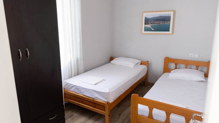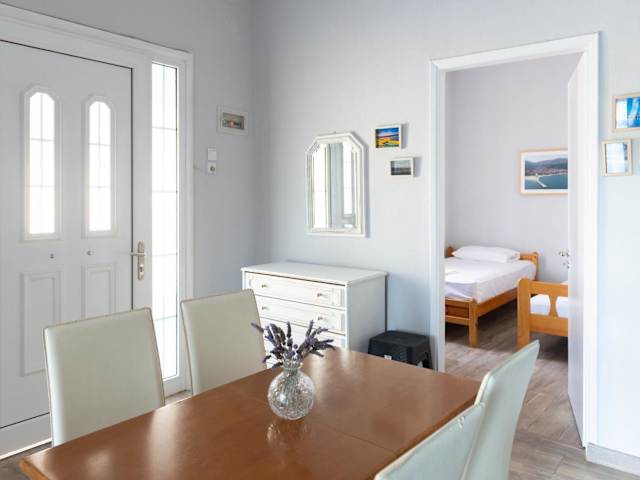 Die Ferienwohnung besteht aus drei Schlafzimmern, einem Wohnzimmer sowie einer voll ausgestatteten Küchenzeile, die Kühlschrank und Kaffeemaschine umfasst. Es gibt ein Badezimmer mit Dusche. Zu den Annehmlichkeiten zählen Klimaanlage, kostenloses Wifi, Handtücher, Bettwäsche sowie Gartenmöbel auf der Terrasse.