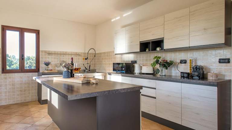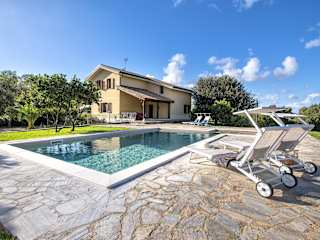 Die Unterkunft umfasst 5 Schlafzimmer und 5 Badezimmer, ausgestattet mit Bidet, Dusche und Haartrockner. Eine gut ausgestattete Küche steht zur Verfügung, die über einen Kühlschrank, Geschirrspüler, Ofen, Kaffeemaschine und Wasserkocher verfügt. Die Villa ist klimatisiert und bietet somit Bequemlichkeit während des Aufenthalts.