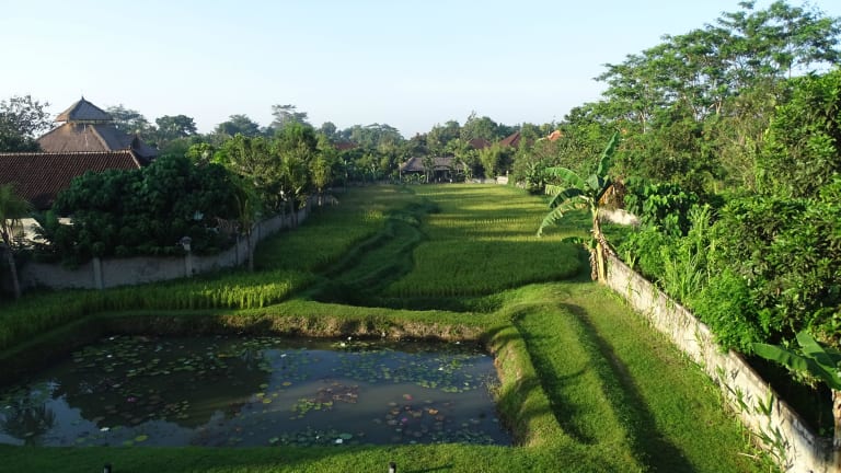 Das Saren Indah Hotel liegt etwa 1 km vom Zentrum Ubuds entfernt. Die Umgebung bietet zahlreiche Sehenswürdigkeiten, darunter den Affenwald von Ubud (400 m entfernt), den Palast von Ubud (1.9 km) sowie die Saraswati-Tempel und die Höhle Goa Gajah (beide ca. 4.5 km entfernt). Der nächstgelegene Flughafen ist der Flughafen Ngurah Rai, der 34 km von der Unterkunft entfernt ist.