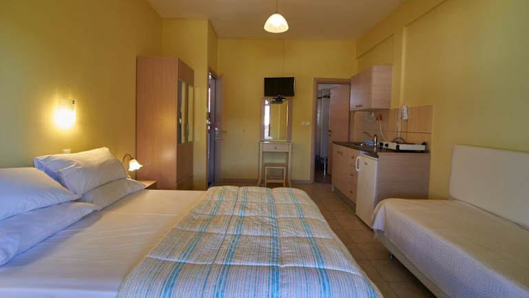 Sarti Paradise verfügt über eine voll ausgestattete Küchenzeile, die mit einem Kühlschrank, einer Kaffeemaschine und einer Herdplatte ausgestattet ist. Zudem sind ein Flachbild-TV und ein eigenes Badezimmer mit Dusche vorhanden. Der Aufenthalt beinhaltet auch Dienstleistungen zur Reinigung von Bettwäsche, Handtüchern und Wäsche, welche nach den Richtlinien der örtlichen Behörden gewaschen werden.