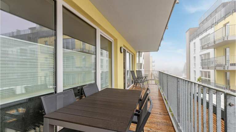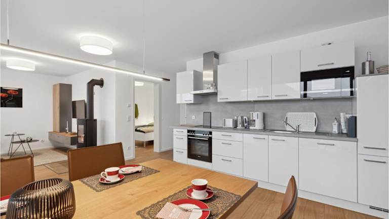 Die Ferienwohnung beinhaltet ein Schlafzimmer, ein Wohnzimmer und eine gut ausgestattete Küche, welche über einen Kühlschrank und einen Geschirrspüler verfügt. Zudem ist ein Balkon vorhanden. WLAN wird kostenfrei in der gesamten Unterkunft bereitgestellt. Das Hotel stellt auch einen kostenlosen Privatparkplatz zur Verfügung.