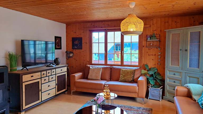 Die Ferienwohnung verfügt über 3 Schlafzimmer und 1 Badezimmer. Sie bietet zudem Bettwäsche und Handtücher. Zur Ausstattung gehören ein Flachbild-TV mit Kabelkanälen, ein Essbereich sowie eine voll ausgestattete Küche. Eine Terrasse mit Bergblick ergänzt das Angebot.