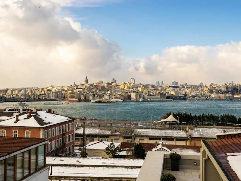 Morgens wird ein Frühstückbuffet mit Aussicht auf den Bosporus auf der Terrasse angeboten. Auf Wunsch können die Gäste auch auf ihrem Zimmer frühstücken, gegen eine zusätzliche Gebühr. Im Hotelrestaurant werden Getränke sowie Gerichte der regionalen und internationalen Küche serviert. Es gibt die Möglichkeit für Lebensmittellieferung in die Unterkunft.