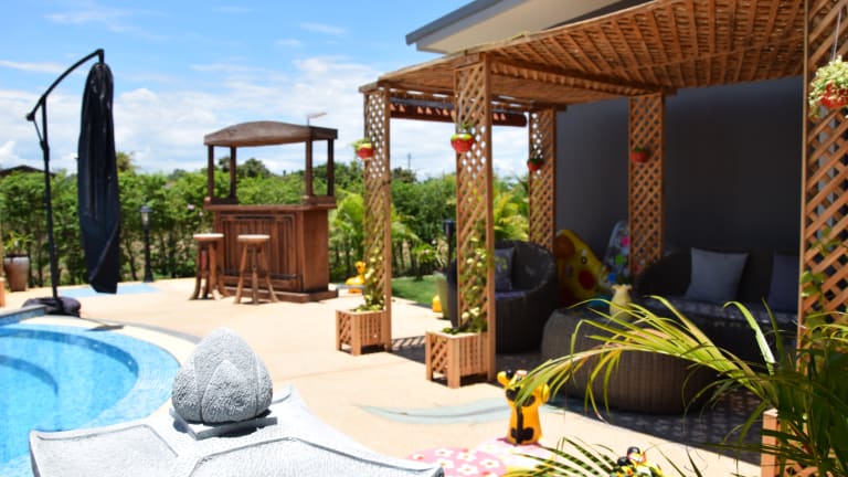 Das SB Holiday Resort bietet Ihnen Poolblick, kostenfreies WLAN und kostenfreie Privatparkplätze in Chiang Mai, 15 km vom Flughafen Central Plaza Chiang Mai entfernt. Jede Unterkunft verfügt über ein Sofa, einen Sitzbereich, einen Flachbild-Sat-TV, eine gut ausgestattete Küche mit einem Essbereich und ein eigenes Bad mit einem Haartrockner. Ein Kühlschrank, ein Kochfeld, ein Toaster und ein Wasserkocher sind ebenfalls vorhanden. Der Ferienpark bietet einen Kinderspielplatz. Schwimmen Sie im Außenpool, gehen Sie wandern oder radfahren, oder entspannen Sie im Garten und nutzen Sie die Grillmöglichkeiten. Der Nachtbasar Chiang Mai und der Wat Phra That Doi Kham liegen jeweils 15 km vom SB Holiday Resort entfernt. Der nächstgelegene Flughafen ist der 16 km von der Unterkunft entfernte internationale Flughafen Chiang Mai. Wir bieten Ihnen eine großzügige Unterkunft in Chiang Mai, einen Außenpool und kostenfreies WLAN. Die klimatisierten Zimmer sind in neutralen Farben gehalten und mit Holzmöbeln,Küchenzeile, einem Flachbild-TV und einem Sofa ausgestattet. Das SB Holiday Resort liegt ca.15 Fahrminuten vom Einkaufszentrum und ca.15 Fahrminuten vom internationalen Flughafen Chiang Mai entfernt. Das SB Holiday Resort bietet 4 Ferienhäuser mit einem großen, üppigen Garten. Freuen Sie sich zudem auf einen Außenpool und kostenfreies WLAN in allen Bereichen. An der Unterkunft stehen kostenfreie Privatparkplätze zur Verfügung. Die Unterkünfte verfügen 2 Klimaanlagen sowie ein Badezimmer mit einer Dusche. Der Nachtbasar Chiang Mai liegt ca. 11 km vom Resort entfernt und den Busbahnhof Chiang Mai erreichen Sie nach ca.12 km. Der nächste Flughafen ist der ca. 13 km entfernte internationale Flughafen Chiang Mai. nur 2 Km von der Christlichen Deutsche Schule Chiang Mai entfernt In der Unterkunft können Sie Tischtennis spielen und die Umgebung ist bei Radfahrern und Wanderern beliebt. Gesprochene Sprachen: Deutsch, Englisch, Thailändisch