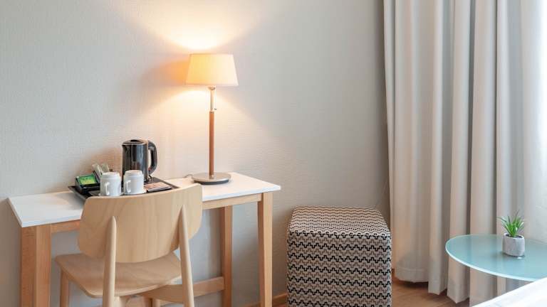 Die Zimmer sind mit einem Schreibtisch, einer Tee- und Kaffeemaschine sowie einem Telefon ausgestattet. Des Weiteren verfügen alle Zimmer über einen TV mit Pay-per-View-Option und Kabelanschluss, ein Radio und kostenfreies WLAN. Eine Kopfkissenauswahl sorgt für eine gute Nachtruhe. Die Badezimmer sind mit einer Dusche und einer Badewanne ausgestattet, zusätzlich gibt es einen Haartrockner. Das Hotel bietet 85 Nichtraucherzimmer sowie ein Raucherzimmer.