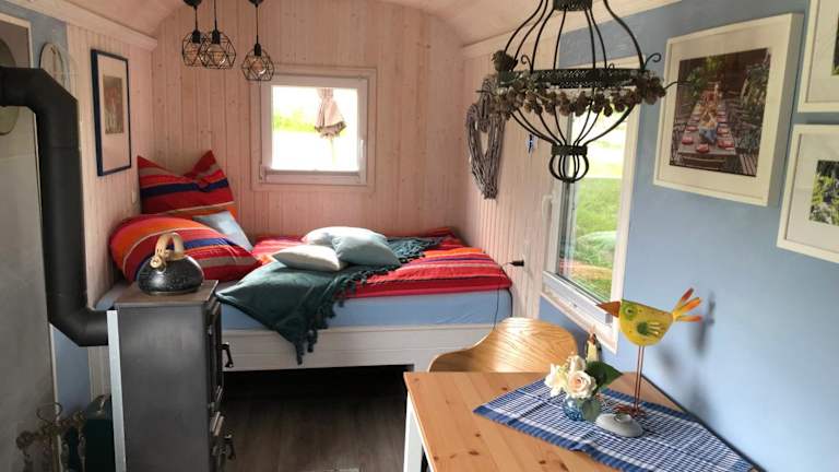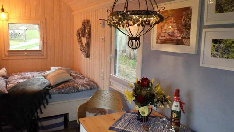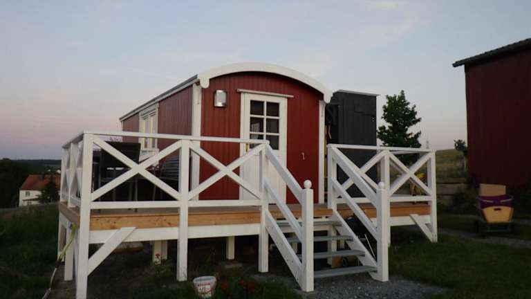 Die Unterkunft Schäferwagen im Auszeithof Niederfrohna bietet eine entspannte Atmosphäre in einem idyllischen Garten. Zu den Annehmlichkeiten zählen eine Gemeinschaftslounge, eine Terrasse, eine Bar und Grillmöglichkeiten. WLAN und eine Parkiermöglichkeit stehen den Gästen kostenlos zur Verfügung.