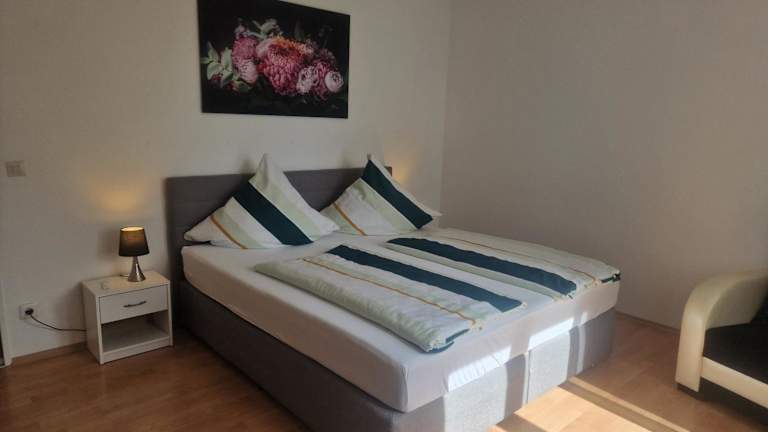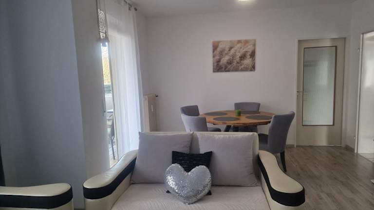 Die Ferienwohnung umfasst 2 Schlafzimmer, ein Wohnzimmer und bietet zudem einen Balkon mit Gartenblick. Zur Ausstattung gehören ein Flachbild-TV sowie eine gut ausgestattete Küche mit einem Kühlschrank und Geschirrspüler. Es gibt 2 Badezimmer mit Badewanne. Handtücher und Bettwäsche werden bereitgestellt.
