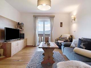 Die Ferienwohnung bietet einen Balkon mit Bergblick, 2 Schlafzimmer, ein Wohnzimmer mit TV sowie eine gut ausgestattete Küche mit Kühlschrank und Geschirrspüler. Es gibt ein Badezimmer mit Dusche. Handtücher und Bettwäsche werden bereitgestellt.
