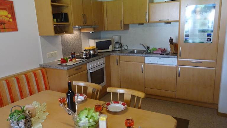 Die Ferienwohnung ist ausgestattet mit einem Flachbild-TV mit Satellitenkanälen, einem Essbereich und einer voll ausgestatteten Küche. Weitere Annehmlichkeiten sind eine Kaffeemaschine, Bettwäsche, Handtücher und ein Grill. Ein Abstellraum für Skier ist ebenfalls vorhanden.