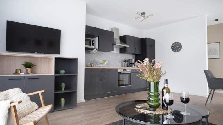 Schicke Apartments in Osnabrück I private Parkplätze I home2share bietet komfortable Übernachtungsmöglichkeiten mit kostenlosem WLAN und einem Privatparkplatz. Die Unterkunft ist für Familien und Nichtraucher geeignet und erlaubt keine Feierlichkeiten wie Junggesellenabschiede.