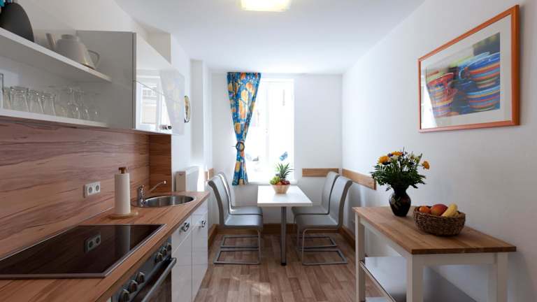 Jedes Apartment verfügt über einen Flachbild-TV, einen DVD-Player und eine voll ausgestattete Küche. Das Standardangebot umfasst auch eine gemütliche Einrichtung mit Holzmöbeln. Die Apartments sind Nichtraucherzimmer und bieten Platz für Familien.