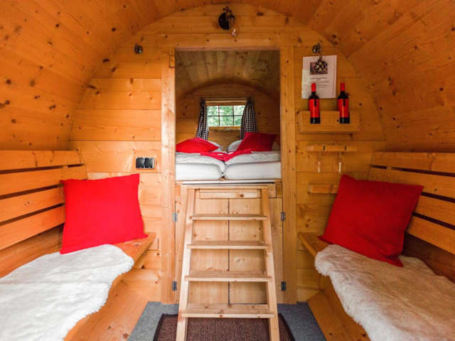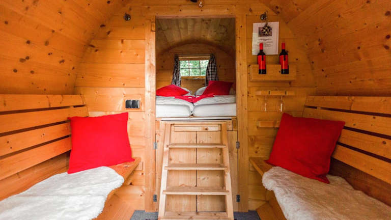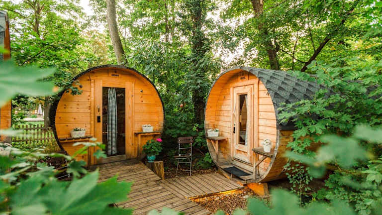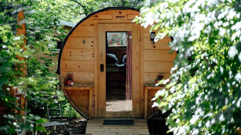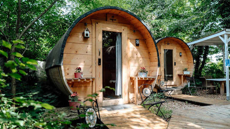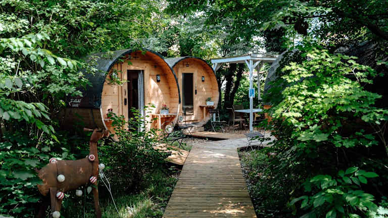 Schlaffass - Schlafen im Holzfass ist eine besondere Unterkunft in Form von Holzfässern, die ein einzigartiges Übernachtungserlebnis bieten. Das Hotel verfügt über verschiedene Annehmlichkeiten wie ein Restaurant, eine Bar, einen Garten, eine Terrasse und einen Kinderspielplatz. Die Einrichtung ist heimelig und einladend.