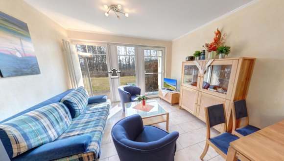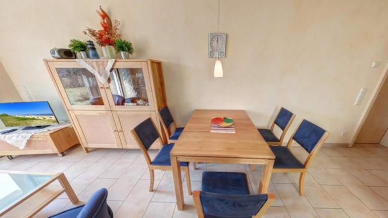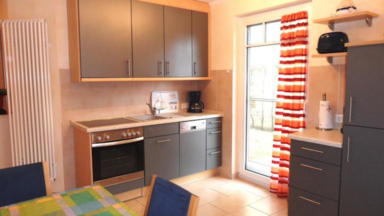 Die Ferienwohnung umfasst 2 Schlafzimmer, ein heimeliges Wohnzimmer mit Flachbild-TV und eine gut ausgestattete Küchenzeile mit Kühlschrank und Geschirrspüler. Zudem steht ein Badezimmer mit Dusche zur Verfügung. Auf Wunsch kann gegen Aufpreis auch Handtücher und Bettwäsche bereitgestellt werden.
