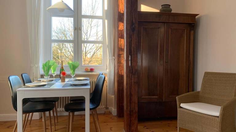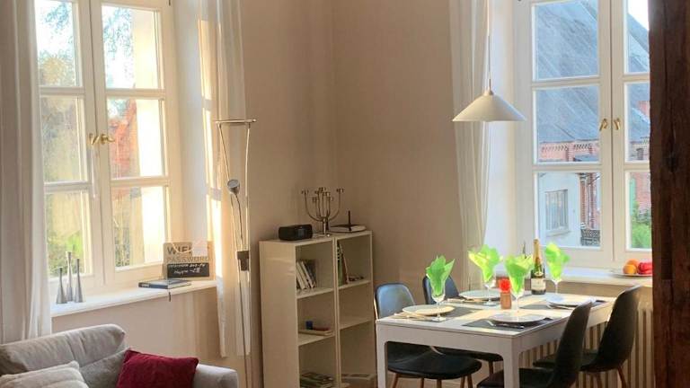 Die Ferienwohnung Schloss Lelkendorf, Fewo Hoppenrade, bietet Übernachtungsmöglichkeiten mit Balkon. Die Unterkunft beinhaltet einen gemütlichen Garten mit Grillmöglichkeiten und kostenlosem Wifi. Ein grosser Vorteil ist der kostenlose Privatparkplatz.