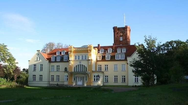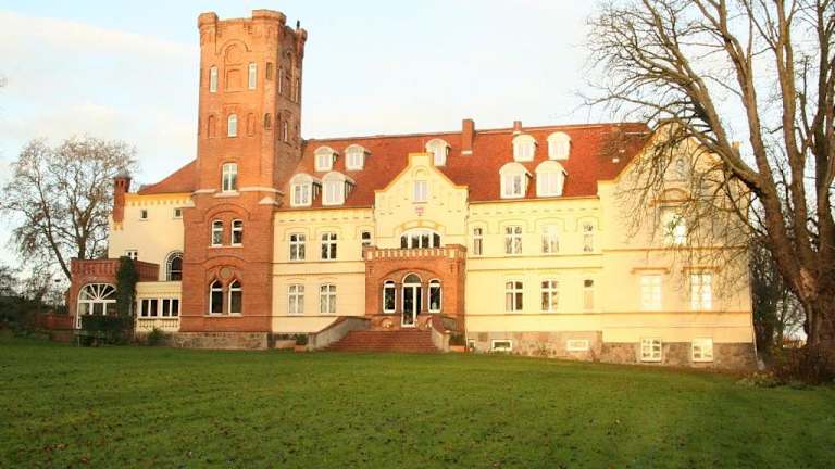 Die Unterkunft Schloss Lelkendorf liegt in Lelkendorf, umgeben von einer einladenden Gartenlandschaft. Die Umgebung bietet Möglichkeiten für wunderschöne Velofahrten.