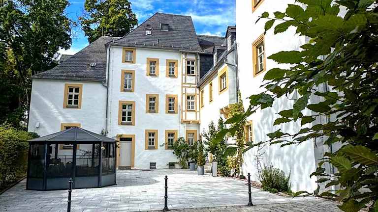 Buchen Sie das Schlosshotel Eyba mit Gästehaus in Saalfeld und genießen Sie einen erholsamen Aufenthalt in stilvollem Ambiente. Freuen Sie sich auf modern und gemütlich eingerichtete Zimmer mit kostenfreiem WLAN, ein abwechslungsreiches Frühstück am Morgen. Nutzen Sie das Fitnesscenter, den weitläufigen Garten und die gemütliche Gemeinschaftslounge oder entspannen Sie in der Sauna und im Wellnessbereich. Für aktive Gäste stehen zudem kostenfreie Fahrräder zur Verfügung, um die wunderschöne Umgebung von Saalfeld zu erkunden.