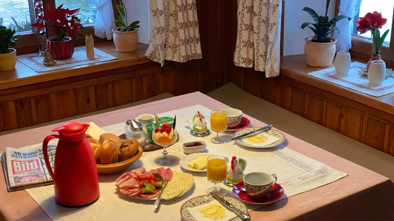 Im Schmuckhof wird ein kontinentales oder vegetarisches Frühstück angeboten. Es werden auch spezielle Ernährungsbedürfnisse auf Anfrage berücksichtigt.