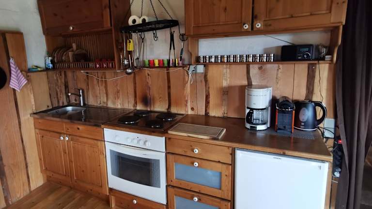 Die Unterkunft verfügt über eine voll ausgestattete Küchenzeile, die mit Kühlschrank und Kaffeemaschine ausgestattet ist, sodass Gäste ihre Mahlzeiten selbst zubereiten können. Grillmöglichkeiten stehen ebenfalls zur Verfügung. Bettwäsche und Handtücher sind in der Regel nicht im Angebot enthalten und müssen von den Gästen mitgebracht werden, für Aufenthalte von 4 Nächten oder mehr ist die Bettwäsche jedoch inklusive.