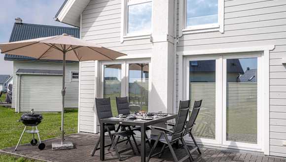Das Ferienhaus verfügt über zwei Schlafzimmer und ist mit einem TV sowie einer voll ausgestatteten Küche ausgestattet. Zur Küchenausstattung gehören unter anderem ein Kühlschrank, Geschirrspüler, Waschmaschine, Ofen und Mikrowelle. Die Bequemlichkeit der Einrichtung sorgt für einen angenehmen Aufenthalt.