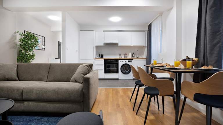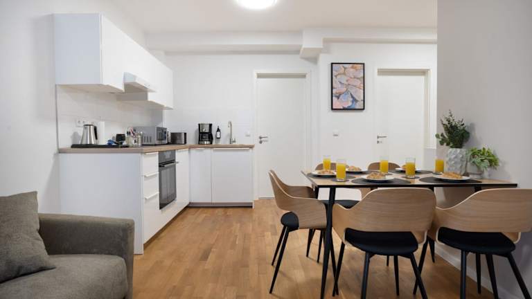 Die Apartments sind mit einer voll ausgestatteten Küche ausgestattet, die einen Kühlschrank, einen Ofen und eine Mikrowelle umfasst. Es besteht die Möglichkeit, Essenslieferung in die Unterkunft zu erhalten.
