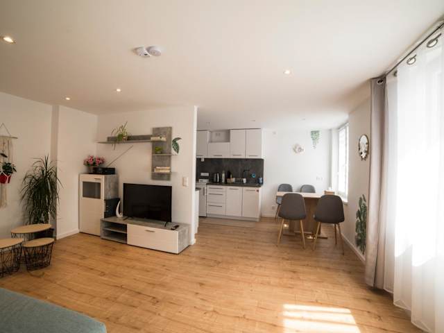 Die Schöne Ferienwohnung bietet eine Fläche von 54 m² und liegt zentrumsnah. Sie verfügt über ein Schlafzimmer mit einem Kingbett sowie ein Wohnzimmer und ist somit ideal für Feriengäste, die eine komfortable Unterkunft suchen.