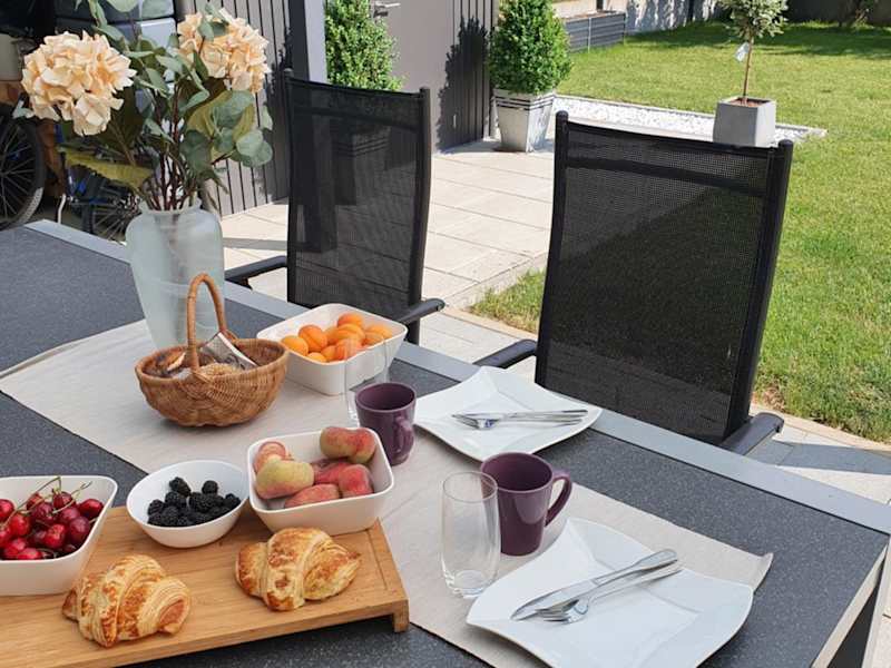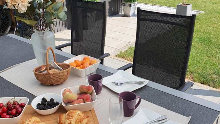 Essenslieferungen in die Unterkunft sind möglich. Für Verpflegung in der Ferienwohnung stehen eine voll ausgestattete Küche mit Kühlschrank und Geschirrspüler zur Verfügung. Die Unterkunft bietet eine gemütliche Atmosphäre zum Zubereiten von eigenen Mahlzeiten.