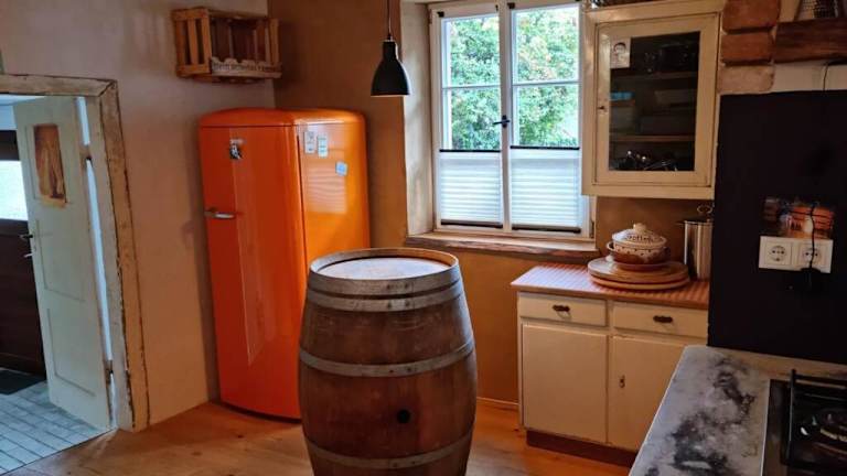 Die voll ausgestattete Küche der Ferienwohnung enthält einen Kühlschrank und eine Kaffeemaschine, wodurch sich Gäste selbst verpflegen können. Essmöglichkeiten in der Umgebung sind ebenfalls vorhanden.
