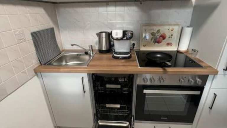 Die Ferienwohnung umfasst 1 Schlafzimmer, eine Küche mit Kühlschrank und Geschirrspüler, einen Flachbild-TV sowie einen Sitzbereich. Das Badezimmer ist mit einer Dusche ausgestattet. Handtücher und Bettwäsche werden bereitgestellt.