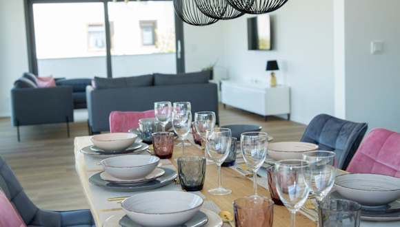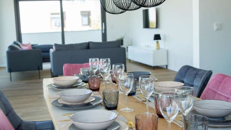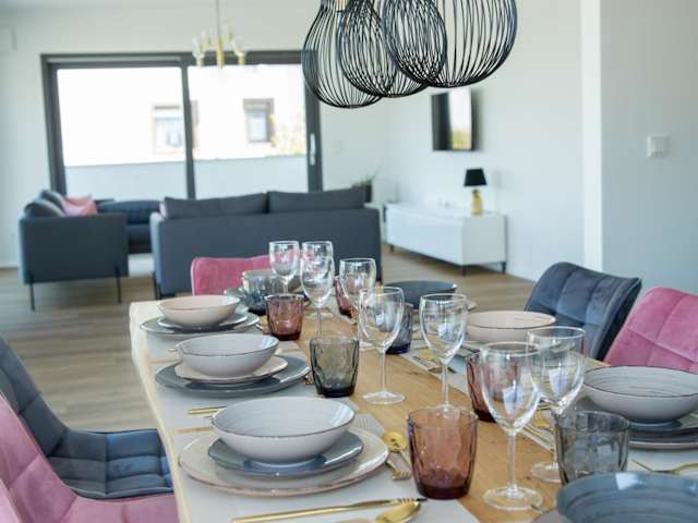 Die Unterkunft Schöner Wohnen bietet Zugang zu einem Balkon, einem kostenlosen Privatparkplatz und kostenlosem Wifi. Die Ferienwohnung ist klimatisiert und verfügt über einen Flachbild-TV, eine voll ausgestattete Küche mit Kühlschrank und einen Sitzbereich.