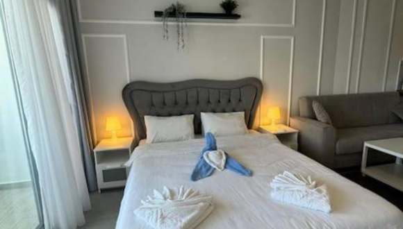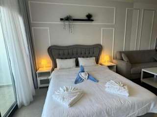 Schönes Appartement mit Meerblick auf Nordzypern, In Caesar Blue Isabella 70 bietet eine Terrasse mit wunderbarem Blick auf das Meer und den Pool. Die Unterkunft hat einen ganzjährig geöffneten Aussenpool und einen Fitnessraum sowie eine Sauna. Es gibt einen eigenen Pool und einen Garten zur Verfügung.