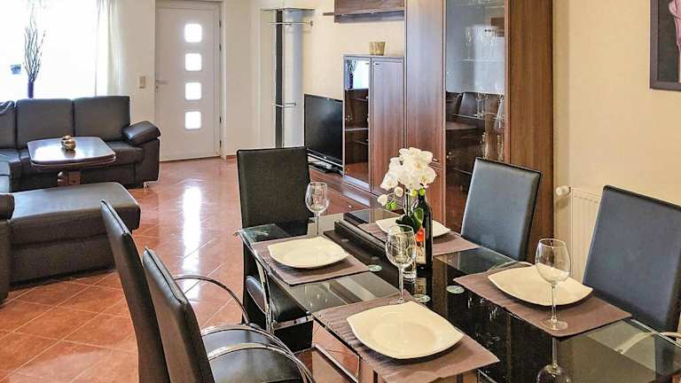 Das Schoenes Ferienhaus mit Terrasse bietet verschiedene Wassersportmöglichkeiten und eine gemütliche Terrasse. Es ist ideal für Gäste, die eine Kombination aus Entspannung und aktiven Ferien suchen.