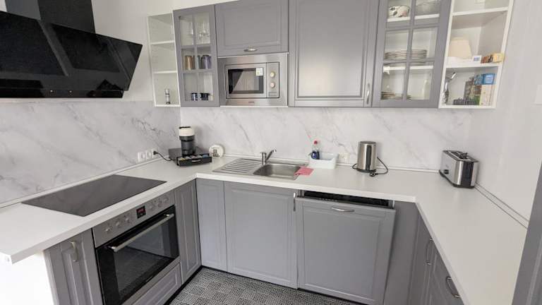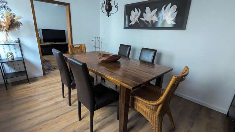 Die Ferienwohnung verfügt über 3 Schlafzimmer sowie eine Küche mit Kühlschrank und Geschirrspüler. Zudem sind 2 Badezimmer mit Dusche, Haartrockner und Waschmaschine vorhanden. Handtücher und Bettwäsche werden bereitgestellt.