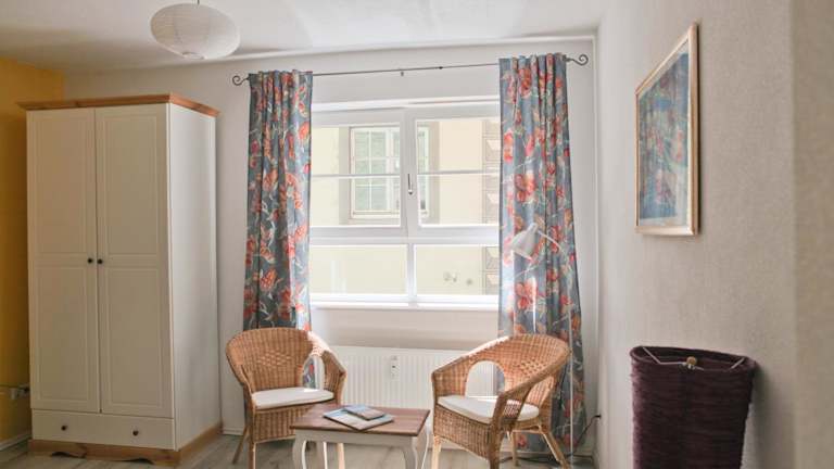 Die Ferienwohnung verfügt über 1 Schlafzimmer und ist mit einer Küche ausgestattet, die einen Kühlschrank und eine Mikrowelle beinhaltet. Ein Flachbild-TV, ein Sitzbereich sowie 1 Badezimmer mit Dusche sind ebenfalls vorhanden. Handtücher und Bettwäsche werden bereitgestellt.