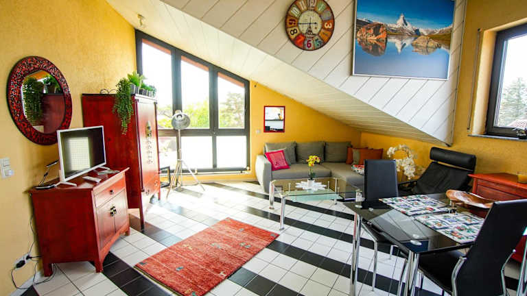 Die Unterkunft Schönes Studio in der Rheinebene befindet sich in Rheinstetten, nur 6,6 km von der Messe Karlsruhe und 13 km von verschiedenen Sehenswürdigkeiten wie dem Badischen Staatstheater und Schloss Karlsruhe entfernt. Der nächstgelegene Flughafen ist der Flughafen Karlsruhe/Baden-Baden, welcher sich 29 km entfernt befindet.